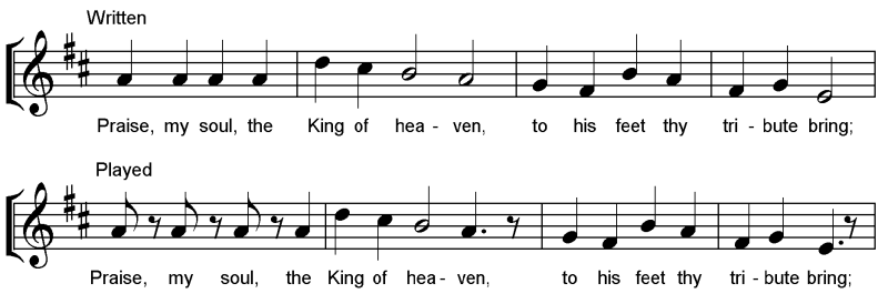 repeated immediately (see graphic). A succession of crotchets on the