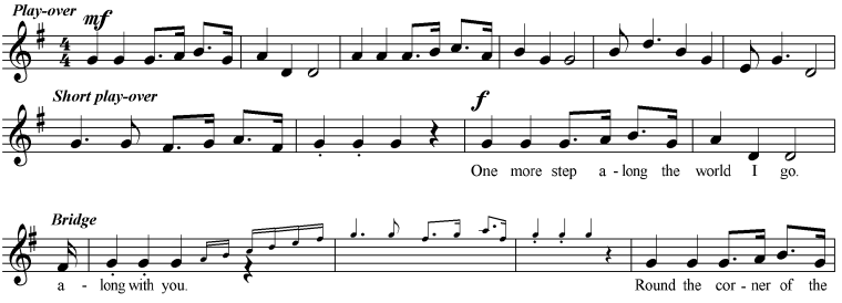 off-beat pick-up at the beginning of each verse; this arrangement makes